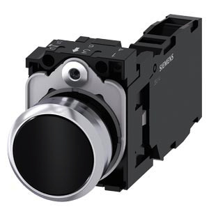 Drucktaster, 22 mm, rund, Metall, hochglanz, schwarz, Druckknopf, flach, tastend, mit Halter, 1S+1Ö, Schraubanschluss Drucktaster SIRIUS ACT zur Schaltung und Steuerung elektrischer Verbraucher. Unter dem Markennamen SIRIUS ACT bietet Siemens ein einzigartiges Portfolio an Befehls- und Meldegeräten mit weltweiten Produkt-Zulassungen in drei modernen Designreihen aus robustem Echtmetall und hochwertigem Kunststoff. Das innovative Aufschnappkonzept vereinfacht die Montage so weit, dass dafür nur eine Hand und kein Spezialwerkzeug erforderlich ist. Als Montagebohrungen genügen nutfreie Löcher, da bereits ein 100%iger Verdrehschutz integriert ist. Dank der durchgängig hohen Schutzart sind die robusten Geräte industrietauglich und für den Außeneinsatz geeignet. Sogar die Reinigung mit Hochdruckstrahl ist möglich. Weder Staub, Öle noch aggressive Laugen können den zuverlässigen Betrieb stören. Neben der Standardverdrahtung können die meisten Geräte auch über PROFINET, AS-Interface oder IO-Link an die Steuerung angebunden werden. Damit reduzieren Sie Ihren Verdrahtungsaufwand, minimieren Fehlerquellen und gewinnen mehr Flexibilität. Komfortabel unterstützt der grafische Online-Konfigurator bei Auswahl und Bestellung von Einzelgeräten, Gehäusen und Beschriftungen. Umfangreiche Dokumentation (z.B. Handbuch, 3D-Daten, Anschlussdiagramm) ist verfügbar. Lieferbare Ausführungen: mehrere Farben, beleuchtet/unbeleuchtet, mit/ohne Beschriftung, verrastende/tastende Betätigung, verschiedene Druckknopf- und Frontringhöhen. Hinweis: Komplettgerät, Lieferung inklusive Halter und Module. SIRIUS ACT - Performance in Action beim Befehlen und Melden. Einfach montiert, einfach stark, einfach perfekt.