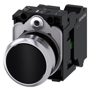 Drucktaster, 22 mm, rund, Metall, hochglanz, schwarz, Druckknopf, flach, tastend, 1S, Federzuganschluss Drucktaster SIRIUS ACT zur Schaltung und Steuerung elektrischer Verbraucher. Unter dem Markennamen SIRIUS ACT bietet Siemens ein einzigartiges Portfolio an Befehls- und Meldegeräten mit weltweiten Produkt-Zulassungen in drei modernen Designreihen aus robustem Echtmetall und hochwertigem Kunststoff. Das innovative Aufschnappkonzept vereinfacht die Montage so weit, dass dafür nur eine Hand und kein Spezialwerkzeug erforderlich ist. Als Montagebohrungen genügen nutfreie Löcher, da bereits ein 100%iger Verdrehschutz integriert ist. Dank der durchgängig hohen Schutzart sind die robusten Geräte industrietauglich und für den Außeneinsatz geeignet. Sogar die Reinigung mit Hochdruckstrahl ist möglich. Weder Staub, Öle noch aggressive Laugen können den zuverlässigen Betrieb stören. Neben der Standardverdrahtung können die meisten Geräte auch über PROFINET, AS-Interface oder IO-Link an die Steuerung angebunden werden. Damit reduzieren Sie Ihren Verdrahtungsaufwand, minimieren Fehlerquellen und gewinnen mehr Flexibilität. Komfortabel unterstützt der grafische Online-Konfigurator bei Auswahl und Bestellung von Einzelgeräten, Gehäusen und Beschriftungen. Umfangreiche Dokumentation (z.B. Handbuch, 3D-Daten, Anschlussdiagramm) ist verfügbar. Lieferbare Ausführungen: mehrere Farben, beleuchtet/unbeleuchtet, mit/ohne Beschriftung, verrastende/tastende Betätigung, verschiedene Druckknopf- und Frontringhöhen. Hinweis: Komplettgerät, Lieferung inklusive Halter und Module. SIRIUS ACT - Performance in Action beim Befehlen und Melden. Einfach montiert, einfach stark, einfach perfekt.