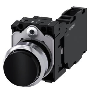 Drucktaster, 22 mm, rund, Metall, hochglanz, schwarz, Druckknopf, hoch, tastend, mit Halter, 1S+1Ö, Schraubanschluss Drucktaster SIRIUS ACT zur Schaltung und Steuerung elektrischer Verbraucher. Unter dem Markennamen SIRIUS ACT bietet Siemens ein einzigartiges Portfolio an Befehls- und Meldegeräten mit weltweiten Produkt-Zulassungen in drei modernen Designreihen aus robustem Echtmetall und hochwertigem Kunststoff. Das innovative Aufschnappkonzept vereinfacht die Montage so weit, dass dafür nur eine Hand und kein Spezialwerkzeug erforderlich ist. Als Montagebohrungen genügen nutfreie Löcher, da bereits ein 100%iger Verdrehschutz integriert ist. Dank der durchgängig hohen Schutzart sind die robusten Geräte industrietauglich und für den Außeneinsatz geeignet. Sogar die Reinigung mit Hochdruckstrahl ist möglich. Weder Staub, Öle noch aggressive Laugen können den zuverlässigen Betrieb stören. Neben der Standardverdrahtung können die meisten Geräte auch über PROFINET, AS-Interface oder IO-Link an die Steuerung angebunden werden. Damit reduzieren Sie Ihren Verdrahtungsaufwand, minimieren Fehlerquellen und gewinnen mehr Flexibilität. Komfortabel unterstützt der grafische Online-Konfigurator bei Auswahl und Bestellung von Einzelgeräten, Gehäusen und Beschriftungen. Umfangreiche Dokumentation (z.B. Handbuch, 3D-Daten, Anschlussdiagramm) ist verfügbar. Lieferbare Ausführungen: mehrere Farben, beleuchtet/unbeleuchtet, mit/ohne Beschriftung, verrastende/tastende Betätigung, verschiedene Druckknopf- und Frontringhöhen. Hinweis: Komplettgerät, Lieferung inklusive Halter und Module. SIRIUS ACT - Performance in Action beim Befehlen und Melden. Einfach montiert, einfach stark, einfach perfekt.