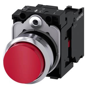 Drucktaster, 22 mm, rund, Metall, hochglanz, rot, Druckknopf, hoch, tastend, mit Halter, 1Ö, Schraubanschluss Drucktaster SIRIUS ACT zur Schaltung und Steuerung elektrischer Verbraucher. Unter dem Markennamen SIRIUS ACT bietet Siemens ein einzigartiges Portfolio an Befehls- und Meldegeräten mit weltweiten Produkt-Zulassungen in drei modernen Designreihen aus robustem Echtmetall und hochwertigem Kunststoff. Das innovative Aufschnappkonzept vereinfacht die Montage so weit, dass dafür nur eine Hand und kein Spezialwerkzeug erforderlich ist. Als Montagebohrungen genügen nutfreie Löcher, da bereits ein 100%iger Verdrehschutz integriert ist. Dank der durchgängig hohen Schutzart sind die robusten Geräte industrietauglich und für den Außeneinsatz geeignet. Sogar die Reinigung mit Hochdruckstrahl ist möglich. Weder Staub, Öle noch aggressive Laugen können den zuverlässigen Betrieb stören. Neben der Standardverdrahtung können die meisten Geräte auch über PROFINET, AS-Interface oder IO-Link an die Steuerung angebunden werden. Damit reduzieren Sie Ihren Verdrahtungsaufwand, minimieren Fehlerquellen und gewinnen mehr Flexibilität. Komfortabel unterstützt der grafische Online-Konfigurator bei Auswahl und Bestellung von Einzelgeräten, Gehäusen und Beschriftungen. Umfangreiche Dokumentation (z.B. Handbuch, 3D-Daten, Anschlussdiagramm) ist verfügbar. Lieferbare Ausführungen: mehrere Farben, beleuchtet/unbeleuchtet, mit/ohne Beschriftung, verrastende/tastende Betätigung, verschiedene Druckknopf- und Frontringhöhen. Hinweis: Komplettgerät, Lieferung inklusive Halter und Module. SIRIUS ACT - Performance in Action beim Befehlen und Melden. Einfach montiert, einfach stark, einfach perfekt.