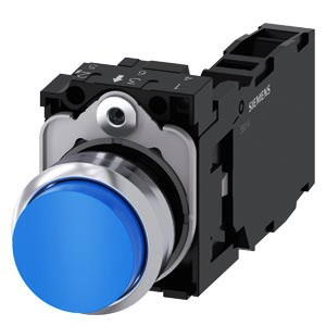 Drucktaster, 22 mm, rund, Metall, hochglanz, blau, Druckknopf, hoch, tastend, mit Halter, 1S+1Ö, Schraubanschluss Drucktaster SIRIUS ACT zur Schaltung und Steuerung elektrischer Verbraucher. Unter dem Markennamen SIRIUS ACT bietet Siemens ein einzigartiges Portfolio an Befehls- und Meldegeräten mit weltweiten Produkt-Zulassungen in drei modernen Designreihen aus robustem Echtmetall und hochwertigem Kunststoff. Das innovative Aufschnappkonzept vereinfacht die Montage so weit, dass dafür nur eine Hand und kein Spezialwerkzeug erforderlich ist. Als Montagebohrungen genügen nutfreie Löcher, da bereits ein 100%iger Verdrehschutz integriert ist. Dank der durchgängig hohen Schutzart sind die robusten Geräte industrietauglich und für den Außeneinsatz geeignet. Sogar die Reinigung mit Hochdruckstrahl ist möglich. Weder Staub, Öle noch aggressive Laugen können den zuverlässigen Betrieb stören. Neben der Standardverdrahtung können die meisten Geräte auch über PROFINET, AS-Interface oder IO-Link an die Steuerung angebunden werden. Damit reduzieren Sie Ihren Verdrahtungsaufwand, minimieren Fehlerquellen und gewinnen mehr Flexibilität. Komfortabel unterstützt der grafische Online-Konfigurator bei Auswahl und Bestellung von Einzelgeräten, Gehäusen und Beschriftungen. Umfangreiche Dokumentation (z.B. Handbuch, 3D-Daten, Anschlussdiagramm) ist verfügbar. Lieferbare Ausführungen: mehrere Farben, beleuchtet/unbeleuchtet, mit/ohne Beschriftung, verrastende/tastende Betätigung, verschiedene Druckknopf- und Frontringhöhen. Hinweis: Komplettgerät, Lieferung inklusive Halter und Module. SIRIUS ACT - Performance in Action beim Befehlen und Melden. Einfach montiert, einfach stark, einfach perfekt.