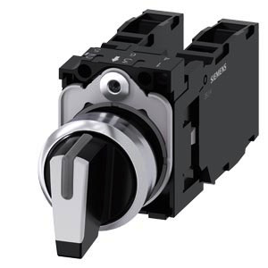 Knebelschalter, beleuchtbar, 22 mm, rund, Metall, hochglanz, weiß, Knebel, kurz, 3 Schaltstellungen I-O-II, verrastend, Schaltwinkel 2x45°, 10:30h/12h/13:30h, mit Halter, 2x1S+1Ö, Schraubanschluss Knebelschalter SIRIUS ACT zur Schaltung und Steuerung elektrischer Verbraucher. Unter dem Markennamen SIRIUS ACT bietet Siemens ein einzigartiges Portfolio an Befehls- und Meldegeräten mit weltweiten Produkt-Zulassungen in drei modernen Designreihen aus robustem Echtmetall und hochwertigem Kunststoff. Das innovative Aufschnappkonzept vereinfacht die Montage so weit, dass dafür nur eine Hand und kein Spezialwerkzeug erforderlich ist. Als Montagebohrungen genügen nutfreie Löcher, da bereits ein 100%iger Verdrehschutz integriert ist. Dank der durchgängig hohen Schutzart sind die robusten Geräte industrietauglich und für den Außeneinsatz geeignet. Sogar die Reinigung mit Hochdruckstrahl ist möglich. Weder Staub, Öle noch aggressive Laugen können den zuverlässigen Betrieb stören. Neben der Standardverdrahtung können die meisten Geräte auch über PROFINET, AS-Interface oder IO-Link an die Steuerung angebunden werden. Damit reduzieren Sie Ihren Verdrahtungsaufwand, minimieren Fehlerquellen und gewinnen mehr Flexibilität. Komfortabel unterstützt der grafische Online-Konfigurator bei Auswahl und Bestellung von Einzelgeräten, Gehäusen und Beschriftungen. Umfangreiche Dokumentation (z.B. Handbuch, 3D-Daten, Anschlussdiagramm) ist verfügbar. Lieferbare Ausführungen: mehrere Farben, 2-4 Schaltstellungen, kurzer/langer Knebel oder Drehknopf, beleuchtet/unbeleuchtet (Beleuchtung auch nachrüstbar), verrastende/tastende Betätigung. Hinweis: Komplettgerät, Lieferung inklusive Halter und Module. SIRIUS ACT - Performance in Actionbeim Befehlen und Melden. Einfach montiert, einfach stark, einfach perfekt.