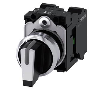 Knebelschalter, beleuchtbar, 22 mm, rund, Metall, hochglanz, weiß, Knebel, kurz, 3 Schaltstellungen I-O-II, verrastend, Schaltwinkel 2x45°, 10:30h/12h/13:30h, mit Halter, 1S, 1S, Federzuganschluss Knebelschalter SIRIUS ACT zur Schaltung und Steuerung elektrischer Verbraucher. Unter dem Markennamen SIRIUS ACT bietet Siemens ein einzigartiges Portfolio an Befehls- und Meldegeräten mit weltweiten Produkt-Zulassungen in drei modernen Designreihen aus robustem Echtmetall und hochwertigem Kunststoff. Das innovative Aufschnappkonzept vereinfacht die Montage so weit, dass dafür nur eine Hand und kein Spezialwerkzeug erforderlich ist. Als Montagebohrungen genügen nutfreie Löcher, da bereits ein 100%iger Verdrehschutz integriert ist. Dank der durchgängig hohen Schutzart sind die robusten Geräte industrietauglich und für den Außeneinsatz geeignet. Sogar die Reinigung mit Hochdruckstrahl ist möglich. Weder Staub, Öle noch aggressive Laugen können den zuverlässigen Betrieb stören. Neben der Standardverdrahtung können die meisten Geräte auch über PROFINET, AS-Interface oder IO-Link an die Steuerung angebunden werden. Damit reduzieren Sie Ihren Verdrahtungsaufwand, minimieren Fehlerquellen und gewinnen mehr Flexibilität. Komfortabel unterstützt der grafische Online-Konfigurator bei Auswahl und Bestellung von Einzelgeräten, Gehäusen und Beschriftungen. Umfangreiche Dokumentation (z.B. Handbuch, 3D-Daten, Anschlussdiagramm) ist verfügbar. Lieferbare Ausführungen: mehrere Farben, 2-4 Schaltstellungen, kurzer/langer Knebel oder Drehknopf, beleuchtet/unbeleuchtet (Beleuchtung auch nachrüstbar), verrastende/tastende Betätigung. Hinweis: Komplettgerät, Lieferung inklusive Halter und Module. SIRIUS ACT - Performance in Actionbeim Befehlen und Melden. Einfach montiert, einfach stark, einfach perfekt.