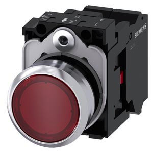 Leuchtdrucktaster, 22 mm, rund, Metall, hochglanz, rot, Druckknopf, flach, tastend, mit Halter, 1Ö, LED-Modul mit integrierter LED AC/DC 24V, Federzuganschluss Leuchtdrucktaster SIRIUS ACT zur Schaltung und Steuerung elektrischer Verbraucher. Unter dem Markennamen SIRIUS ACT bietet Siemens ein einzigartiges Portfolio an Befehls- und Meldegeräten mit weltweiten Produkt-Zulassungen in drei modernen Designreihen aus robustem Echtmetall und hochwertigem Kunststoff. Das innovative Aufschnappkonzept vereinfacht die Montage so weit, dass dafür nur eine Hand und kein Spezialwerkzeug erforderlich ist. Als Montagebohrungen genügen nutfreie Löcher, da bereits ein 100%iger Verdrehschutz integriert ist. Dank der durchgängig hohen Schutzart sind die robusten Geräte industrietauglich und für den Außeneinsatz geeignet. Sogar die Reinigung mit Hochdruckstrahl ist möglich. Weder Staub, Öle noch aggressive Laugen können den zuverlässigen Betrieb stören. Neben der Standardverdrahtung können die meisten Geräte auch über PROFINET, AS-Interface oder IO-Link an die Steuerung angebunden werden. Damit reduzieren Sie Ihren Verdrahtungsaufwand, minimieren Fehlerquellen und gewinnen mehr Flexibilität. Komfortabel unterstützt der grafische Online-Konfigurator bei Auswahl und Bestellung von Einzelgeräten, Gehäusen und Beschriftungen. Umfangreiche Dokumentation (z.B. Handbuch, 3D-Daten, Anschlussdiagramm) ist verfügbar. Lieferbare Ausführungen: mehrere Farben, beleuchtet/unbeleuchtet, mit/ohne Beschriftung, verrastende/tastende Betätigung, verschiedene Druckknopf- und Frontringhöhen. Hinweis: Komplettgerät, Lieferung inklusive Halter und Module. SIRIUS ACT - Performance in Action beim Befehlen und Melden. Einfach montiert, einfach stark, einfach perfekt.