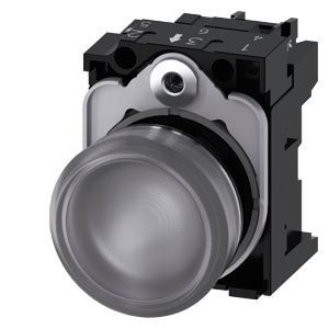 Leuchtmelder, 22 mm, rund, Metall, hochglanz, klar, Linse, glatt, mit Halter, LED-Modul mit integrierter LED AC/DC 24V, Schraubanschluss Leuchtmelder SIRIUS ACT zur Signalisierung von Schaltzuständen oder Störungen in Anlagen mit brillianter Leuchtkraft dank energieeffizienter LED-Technologie. Unter dem Markennamen SIRIUS ACT bietet Siemens ein einzigartiges Portfolio an Befehls- und Meldegeräten mit weltweiten Produkt-Zulassungen in drei modernen Designreihen aus robustem Echtmetall und hochwertigem Kunststoff. Das innovative Aufschnappkonzept vereinfacht die Montage so weit, dass dafür nur eine Hand und kein Spezialwerkzeug erforderlich ist. Als Montagebohrungen genügen nutfreie Löcher, da bereits ein 100%iger Verdrehschutz integriert ist. Dank der durchgängig hohen Schutzart sind die robusten Geräte industrietauglich und für den Außeneinsatz geeignet. Sogar die Reinigung mit Hochdruckstrahl ist möglich. Weder Staub, Öle noch aggressive Laugen können den zuverlässigen Betrieb stören. Neben der Standardverdrahtung können die meisten Geräte auch über PROFINET, AS-Interface oder IO-Link an die Steuerung angebunden werden. Damit reduzieren Sie Ihren Verdrahtungsaufwand, minimieren Fehlerquellen und gewinnen mehr Flexibilität. Komfortabel unterstützt der grafische Online-Konfigurator bei Auswahl und Bestellung von Einzelgeräten, Gehäusen und Beschriftungen. Umfangreiche Dokumentation (z.B. Handbuch, 3D-Daten, Anschlussdiagramm) ist verfügbar. Lieferbare Ausführungen: mehrere Farben, verschiedene Spannungsvarianten. Hinweis: Komplettgerät, Lieferung inklusive Halter und Module. SIRIUS ACT - Performance in Action beim Befehlen und Melden. Einfach montiert, einfach stark, einfach perfekt.