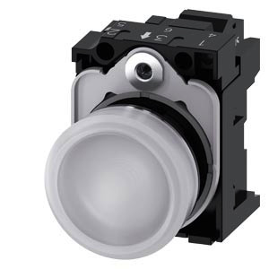 Leuchtmelder, 22 mm, rund, Metall, hochglanz, weiß, Linse, glatt, mit Halter, LED-Modul mit integrierter LED AC 110 V, Federzuganschluss Leuchtmelder SIRIUS ACT zur Signalisierung von Schaltzuständen oder Störungen in Anlagen mit brillianter Leuchtkraft dank energieeffizienter LED-Technologie. Unter dem Markennamen SIRIUS ACT bietet Siemens ein einzigartiges Portfolio an Befehls- und Meldegeräten mit weltweiten Produkt-Zulassungen in drei modernen Designreihen aus robustem Echtmetall und hochwertigem Kunststoff. Das innovative Aufschnappkonzept vereinfacht die Montage so weit, dass dafür nur eine Hand und kein Spezialwerkzeug erforderlich ist. Als Montagebohrungen genügen nutfreie Löcher, da bereits ein 100%iger Verdrehschutz integriert ist. Dank der durchgängig hohen Schutzart sind die robusten Geräte industrietauglich und für den Außeneinsatz geeignet. Sogar die Reinigung mit Hochdruckstrahl ist möglich. Weder Staub, Öle noch aggressive Laugen können den zuverlässigen Betrieb stören. Neben der Standardverdrahtung können die meisten Geräte auch über PROFINET, AS-Interface oder IO-Link an die Steuerung angebunden werden. Damit reduzieren Sie Ihren Verdrahtungsaufwand, minimieren Fehlerquellen und gewinnen mehr Flexibilität. Komfortabel unterstützt der grafische Online-Konfigurator bei Auswahl und Bestellung von Einzelgeräten, Gehäusen und Beschriftungen. Umfangreiche Dokumentation (z.B. Handbuch, 3D-Daten, Anschlussdiagramm) ist verfügbar. Lieferbare Ausführungen: mehrere Farben, verschiedene Spannungsvarianten. Hinweis: Komplettgerät, Lieferung inklusive Halter und Module. SIRIUS ACT - Performance in Action beim Befehlen und Melden. Einfach montiert, einfach stark, einfach perfekt.