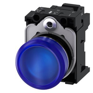 Leuchtmelder, 22 mm, rund, Metall, hochglanz, blau, Linse, glatt, mit Halter, LED-Modul mit integrierter LED AC 230 V, Federzuganschluss Leuchtmelder SIRIUS ACT zur Signalisierung von Schaltzuständen oder Störungen in Anlagen mit brillianter Leuchtkraft dank energieeffizienter LED-Technologie. Unter dem Markennamen SIRIUS ACT bietet Siemens ein einzigartiges Portfolio an Befehls- und Meldegeräten mit weltweiten Produkt-Zulassungen in drei modernen Designreihen aus robustem Echtmetall und hochwertigem Kunststoff. Das innovative Aufschnappkonzept vereinfacht die Montage so weit, dass dafür nur eine Hand und kein Spezialwerkzeug erforderlich ist. Als Montagebohrungen genügen nutfreie Löcher, da bereits ein 100%iger Verdrehschutz integriert ist. Dank der durchgängig hohen Schutzart sind die robusten Geräte industrietauglich und für den Außeneinsatz geeignet. Sogar die Reinigung mit Hochdruckstrahl ist möglich. Weder Staub, Öle noch aggressive Laugen können den zuverlässigen Betrieb stören. Neben der Standardverdrahtung können die meisten Geräte auch über PROFINET, AS-Interface oder IO-Link an die Steuerung angebunden werden. Damit reduzieren Sie Ihren Verdrahtungsaufwand, minimieren Fehlerquellen und gewinnen mehr Flexibilität. Komfortabel unterstützt der grafische Online-Konfigurator bei Auswahl und Bestellung von Einzelgeräten, Gehäusen und Beschriftungen. Umfangreiche Dokumentation (z.B. Handbuch, 3D-Daten, Anschlussdiagramm) ist verfügbar. Lieferbare Ausführungen: mehrere Farben, verschiedene Spannungsvarianten. Hinweis: Komplettgerät, Lieferung inklusive Halter und Module. SIRIUS ACT - Performance in Action beim Befehlen und Melden. Einfach montiert, einfach stark, einfach perfekt.