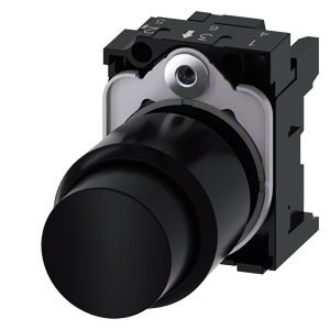 Drucktaster, kompakt, mit verlängertem Hub (12 mm), 22 mm, rund, Kunststoff, schwarz, Druckknopf, hoch, tastend, mit Halter Drucktaster SIRIUS ACT zur Schaltung und Steuerung elektrischer Verbraucher. Unter dem Markennamen SIRIUS ACT bietet Siemens ein einzigartiges Portfolio an Befehls- und Meldegeräten mit weltweiten Produkt-Zulassungen in drei modernen Designreihen aus robustem Echtmetall und hochwertigem Kunststoff. Das innovative Aufschnappkonzept vereinfacht die Montage so weit, dass dafür nur eine Hand und kein Spezialwerkzeug erforderlich ist. Als Montagebohrungen genügen nutfreie Löcher, da bereits ein 100%iger Verdrehschutz integriert ist. Dank der durchgängig hohen Schutzart sind die robusten Geräte industrietauglich und für den Außeneinsatz geeignet. Sogar die Reinigung mit Hochdruckstrahl ist möglich. Weder Staub, Öle noch aggressive Laugen können den zuverlässigen Betrieb stören. Neben der Standardverdrahtung können die meisten Geräte auch über PROFINET, AS-Interface oder IO-Link an die Steuerung angebunden werden. Damit reduzieren Sie Ihren Verdrahtungsaufwand, minimieren Fehlerquellen und gewinnen mehr Flexibilität. Komfortabel unterstützt der grafische Online-Konfigurator bei Auswahl und Bestellung von Einzelgeräten, Gehäusen und Beschriftungen. Umfangreiche Dokumentation (z.B. Handbuch, 3D-Daten, Anschlussdiagramm) ist verfügbar. Lieferbare Ausführungen: mehrere Farben, beleuchtet/unbeleuchtet, mit/ohne Beschriftung, verrastende/tastende Betätigung, verschiedene Druckknopf- und Frontringhöhen. Hinweis: Kompaktgerät mit mechanischer Schaltfunktion, kann nur mit Verlängerungsstößel (3SU1900-0KG10-0AA0) eingesetzt werden. Lieferung inklusive Halter. SIRIUS ACT - Performance in Action beim Befehlen und Melden. Einfach montiert, einfach stark, einfach perfekt.