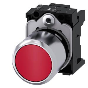 Drucktaster, kompakt, mit verlängertem Hub (12 mm), 22 mm, rund, Metall, rot, Druckknopf, flach, tastend, mit Halter Drucktaster SIRIUS ACT zur Schaltung und Steuerung elektrischer Verbraucher. Unter dem Markennamen SIRIUS ACT bietet Siemens ein einzigartiges Portfolio an Befehls- und Meldegeräten mit weltweiten Produkt-Zulassungen in drei modernen Designreihen aus robustem Echtmetall und hochwertigem Kunststoff. Das innovative Aufschnappkonzept vereinfacht die Montage so weit, dass dafür nur eine Hand und kein Spezialwerkzeug erforderlich ist. Als Montagebohrungen genügen nutfreie Löcher, da bereits ein 100%iger Verdrehschutz integriert ist. Dank der durchgängig hohen Schutzart sind die robusten Geräte industrietauglich und für den Außeneinsatz geeignet. Sogar die Reinigung mit Hochdruckstrahl ist möglich. Weder Staub, Öle noch aggressive Laugen können den zuverlässigen Betrieb stören. Neben der Standardverdrahtung können die meisten Geräte auch über PROFINET, AS-Interface oder IO-Link an die Steuerung angebunden werden. Damit reduzieren Sie Ihren Verdrahtungsaufwand, minimieren Fehlerquellen und gewinnen mehr Flexibilität. Komfortabel unterstützt der grafische Online-Konfigurator bei Auswahl und Bestellung von Einzelgeräten, Gehäusen und Beschriftungen. Umfangreiche Dokumentation (z.B. Handbuch, 3D-Daten, Anschlussdiagramm) ist verfügbar. Lieferbare Ausführungen: mehrere Farben, beleuchtet/unbeleuchtet, mit/ohne Beschriftung, verrastende/tastende Betätigung, verschiedene Druckknopf- und Frontringhöhen. Hinweis: Kompaktgerät mit mechanischer Schaltfunktion, kann nur mit Verlängerungsstößel (3SU1900-0KG10-0AA0) eingesetzt werden. Lieferung inklusive Halter. SIRIUS ACT - Performance in Action beim Befehlen und Melden. Einfach montiert, einfach stark, einfach perfekt.