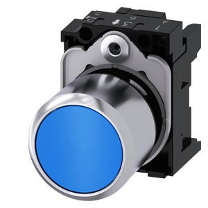 Drucktaster, kompakt, mit verlängertem Hub (12 mm), 22 mm, rund, Metall, blau, Druckknopf, flach, tastend, mit Halter Drucktaster SIRIUS ACT zur Schaltung und Steuerung elektrischer Verbraucher. Unter dem Markennamen SIRIUS ACT bietet Siemens ein einzigartiges Portfolio an Befehls- und Meldegeräten mit weltweiten Produkt-Zulassungen in drei modernen Designreihen aus robustem Echtmetall und hochwertigem Kunststoff. Das innovative Aufschnappkonzept vereinfacht die Montage so weit, dass dafür nur eine Hand und kein Spezialwerkzeug erforderlich ist. Als Montagebohrungen genügen nutfreie Löcher, da bereits ein 100%iger Verdrehschutz integriert ist. Dank der durchgängig hohen Schutzart sind die robusten Geräte industrietauglich und für den Außeneinsatz geeignet. Sogar die Reinigung mit Hochdruckstrahl ist möglich. Weder Staub, Öle noch aggressive Laugen können den zuverlässigen Betrieb stören. Neben der Standardverdrahtung können die meisten Geräte auch über PROFINET, AS-Interface oder IO-Link an die Steuerung angebunden werden. Damit reduzieren Sie Ihren Verdrahtungsaufwand, minimieren Fehlerquellen und gewinnen mehr Flexibilität. Komfortabel unterstützt der grafische Online-Konfigurator bei Auswahl und Bestellung von Einzelgeräten, Gehäusen und Beschriftungen. Umfangreiche Dokumentation (z.B. Handbuch, 3D-Daten, Anschlussdiagramm) ist verfügbar. Lieferbare Ausführungen: mehrere Farben, beleuchtet/unbeleuchtet, mit/ohne Beschriftung, verrastende/tastende Betätigung, verschiedene Druckknopf- und Frontringhöhen. Hinweis: Kompaktgerät mit mechanischer Schaltfunktion, kann nur mit Verlängerungsstößel (3SU1900-0KG10-0AA0) eingesetzt werden. Lieferung inklusive Halter. SIRIUS ACT - Performance in Action beim Befehlen und Melden. Einfach montiert, einfach stark, einfach perfekt.