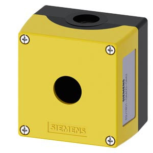 Gehäuse für Befehlsgeräte, 22 mm, rund, Gehäusematerial Kunststoff, Gehäuseoberteil gelb, 1 Befehlsstelle Kunststoff, Befehlsstelle mittig, ohne Bestückung Gehäuse SIRIUS ACT für die Montage der 22,5 mm Befehls- und Meldegeräte bei räumlich getrennter Anordnung von Steuereinheiten und Schaltschränken. Unter dem Markennamen SIRIUS ACT bietet Siemens ein einzigartiges Portfolio an Befehls- und Meldegeräten mit weltweiten Produkt-Zulassungen in drei modernen Designreihen aus robustem Echtmetall und hochwertigem Kunststoff. Das innovative Aufschnappkonzept vereinfacht die Montage so weit, dass dafür nur eine Hand und kein Spezialwerkzeug erforderlich ist. Als Montagebohrungen genügen nutfreie Löcher, da bereits ein 100%iger Verdrehschutz integriert ist. Dank der durchgängig hohen Schutzart sind die robusten Geräte industrietauglich und für den Außeneinsatz geeignet. Sogar die Reinigung mit Hochdruckstrahl ist möglich. Weder Staub, Öle noch aggressive Laugen können den zuverlässigen Betrieb stören. Neben der Standardverdrahtung können die meisten Geräte auch über PROFINET, AS-Interface oder IO-Link an die Steuerung angebunden werden. Damit reduzieren Sie Ihren Verdrahtungsaufwand, minimieren Fehlerquellen und gewinnen mehr Flexibilität. Komfortabel unterstützt der grafische Online-Konfigurator bei Auswahl und Bestellung von Einzelgeräten, Gehäusen und Beschriftungen. Umfangreiche Dokumentation (z.B. Handbuch, 3D-Daten, Anschlussdiagramm) ist verfügbar. Lieferbare Ausführungen: gelb/grau, Kunststoff/Metall, 1-6 Befehlstellen, Leergehäuse/Vorbestückung, wahlweise mit AS-Interface-Anbindung. SIRIUS ACT - Performance in Action beim Befehlen und Melden. Einfach montiert, einfach stark, einfach perfekt.