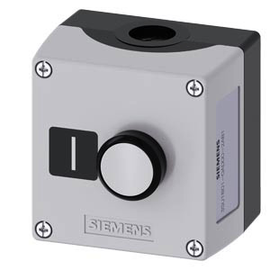 Gehäuse für Befehlsgeräte, 22 mm, rund, Gehäusematerial Kunststoff, Gehäuseoberteil grau, 1 Befehlsstelle Kunststoff, Vertiefung für Schild, A=Drucktaster weiß, Schild: I, 1S, Schraubanschluss, Bodenbefestigung, Schild beigelegt Gehäuse SIRIUS ACT für die Montage der 22,5 mm Befehls- und Meldegeräte bei räumlich getrennter Anordnung von Steuereinheiten und Schaltschränken. Unter dem Markennamen SIRIUS ACT bietet Siemens ein einzigartiges Portfolio an Befehls- und Meldegeräten mit weltweiten Produkt-Zulassungen in drei modernen Designreihen aus robustem Echtmetall und hochwertigem Kunststoff. Das innovative Aufschnappkonzept vereinfacht die Montage so weit, dass dafür nur eine Hand und kein Spezialwerkzeug erforderlich ist. Als Montagebohrungen genügen nutfreie Löcher, da bereits ein 100%iger Verdrehschutz integriert ist. Dank der durchgängig hohen Schutzart sind die robusten Geräte industrietauglich und für den Außeneinsatz geeignet. Sogar die Reinigung mit Hochdruckstrahl ist möglich. Weder Staub, Öle noch aggressive Laugen können den zuverlässigen Betrieb stören. Neben der Standardverdrahtung können die meisten Geräte auch über PROFINET, AS-Interface oder IO-Link an die Steuerung angebunden werden. Damit reduzieren Sie Ihren Verdrahtungsaufwand, minimieren Fehlerquellen und gewinnen mehr Flexibilität. Komfortabel unterstützt der grafische Online-Konfigurator bei Auswahl und Bestellung von Einzelgeräten, Gehäusen und Beschriftungen. Umfangreiche Dokumentation (z.B. Handbuch, 3D-Daten, Anschlussdiagramm) ist verfügbar. Lieferbare Ausführungen: gelb/grau, Kunststoff/Metall, 1-6 Befehlstellen, Leergehäuse/Vorbestückung, wahlweise mit AS-Interface-Anbindung. SIRIUS ACT - Performance in Action beim Befehlen und Melden. Einfach montiert, einfach stark, einfach perfekt.