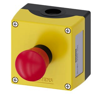 Gehäuse für Befehlsgeräte, 22 mm, rund, Gehäusematerial Kunststoff, Gehäuseoberteil gelb, 1 Befehlsstelle Kunststoff, Befehlsstelle mittig, A=NOT-HALT-Pilzdrucktaster rot, 40 mm, drehentriegelt, 1Ö, Schraubanschluss, Bodenbefestigung, oben und unten je 1xM20 Gehäuse SIRIUS ACT für die Montage der 22,5 mm Befehls- und Meldegeräte bei räumlich getrennter Anordnung von Steuereinheiten und Schaltschränken. Unter dem Markennamen SIRIUS ACT bietet Siemens ein einzigartiges Portfolio an Befehls- und Meldegeräten mit weltweiten Produkt-Zulassungen in drei modernen Designreihen aus robustem Echtmetall und hochwertigem Kunststoff. Das innovative Aufschnappkonzept vereinfacht die Montage so weit, dass dafür nur eine Hand und kein Spezialwerkzeug erforderlich ist. Als Montagebohrungen genügen nutfreie Löcher, da bereits ein 100%iger Verdrehschutz integriert ist. Dank der durchgängig hohen Schutzart sind die robusten Geräte industrietauglich und für den Außeneinsatz geeignet. Sogar die Reinigung mit Hochdruckstrahl ist möglich. Weder Staub, Öle noch aggressive Laugen können den zuverlässigen Betrieb stören. Neben der Standardverdrahtung können die meisten Geräte auch über PROFINET, AS-Interface oder IO-Link an die Steuerung angebunden werden. Damit reduzieren Sie Ihren Verdrahtungsaufwand, minimieren Fehlerquellen und gewinnen mehr Flexibilität. Komfortabel unterstützt der grafische Online-Konfigurator bei Auswahl und Bestellung von Einzelgeräten, Gehäusen und Beschriftungen. Umfangreiche Dokumentation (z.B. Handbuch, 3D-Daten, Anschlussdiagramm) ist verfügbar. Lieferbare Ausführungen: gelb/grau, Kunststoff/Metall, 1-6 Befehlstellen, Leergehäuse/Vorbestückung, wahlweise mit AS-Interface-Anbindung. SIRIUS ACT - Performance in Action beim Befehlen und Melden. Einfach montiert, einfach stark, einfach perfekt.