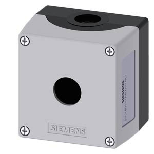 Gehäuse für 4-Stellungsknebel-, Koordinaten-, ID Schlüsselschalter, 22 mm, rund, Gehäusematerial Kunststoff, Gehäuseoberteil grau, 1 Befehlsstelle Kunststoff, ohne Bestückung, nur für Frontplattenbefestigung Gehäuse SIRIUS ACT für die Montage der 22,5 mm Befehls- und Meldegeräte bei räumlich getrennter Anordnung von Steuereinheiten und Schaltschränken. Unter dem Markennamen SIRIUS ACT bietet Siemens ein einzigartiges Portfolio an Befehls- und Meldegeräten mit weltweiten Produkt-Zulassungen in drei modernen Designreihen aus robustem Echtmetall und hochwertigem Kunststoff. Das innovative Aufschnappkonzept vereinfacht die Montage so weit, dass dafür nur eine Hand und kein Spezialwerkzeug erforderlich ist. Als Montagebohrungen genügen nutfreie Löcher, da bereits ein 100%iger Verdrehschutz integriert ist. Dank der durchgängig hohen Schutzart sind die robusten Geräte industrietauglich und für den Außeneinsatz geeignet. Sogar die Reinigung mit Hochdruckstrahl ist möglich. Weder Staub, Öle noch aggressive Laugen können den zuverlässigen Betrieb stören. Neben der Standardverdrahtung können die meisten Geräte auch über PROFINET, AS-Interface oder IO-Link an die Steuerung angebunden werden. Damit reduzieren Sie Ihren Verdrahtungsaufwand, minimieren Fehlerquellen und gewinnen mehr Flexibilität. Komfortabel unterstützt der grafische Online-Konfigurator bei Auswahl und Bestellung von Einzelgeräten, Gehäusen und Beschriftungen. Umfangreiche Dokumentation (z.B. Handbuch, 3D-Daten, Anschlussdiagramm) ist verfügbar. Lieferbare Ausführungen: gelb/grau, Kunststoff/Metall, 1-6 Befehlstellen, Leergehäuse/Vorbestückung, wahlweise mit AS-Interface-Anbindung. SIRIUS ACT - Performance in Action beim Befehlen und Melden. Einfach montiert, einfach stark, einfach perfekt.