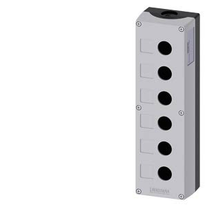 Gehäuse für Befehlsgeräte, 22 mm, rund, Gehäusematerial Kunststoff, Gehäuseoberteil grau, 6 Befehlsstellen Kunststoff, Vertiefung für Schilder, ohne Bestückung Gehäuse SIRIUS ACT für die Montage der 22,5 mm Befehls- und Meldegeräte bei räumlich getrennter Anordnung von Steuereinheiten und Schaltschränken. Unter dem Markennamen SIRIUS ACT bietet Siemens ein einzigartiges Portfolio an Befehls- und Meldegeräten mit weltweiten Produkt-Zulassungen in drei modernen Designreihen aus robustem Echtmetall und hochwertigem Kunststoff. Das innovative Aufschnappkonzept vereinfacht die Montage so weit, dass dafür nur eine Hand und kein Spezialwerkzeug erforderlich ist. Als Montagebohrungen genügen nutfreie Löcher, da bereits ein 100%iger Verdrehschutz integriert ist. Dank der durchgängig hohen Schutzart sind die robusten Geräte industrietauglich und für den Außeneinsatz geeignet. Sogar die Reinigung mit Hochdruckstrahl ist möglich. Weder Staub, Öle noch aggressive Laugen können den zuverlässigen Betrieb stören. Neben der Standardverdrahtung können die meisten Geräte auch über PROFINET, AS-Interface oder IO-Link an die Steuerung angebunden werden. Damit reduzieren Sie Ihren Verdrahtungsaufwand, minimieren Fehlerquellen und gewinnen mehr Flexibilität. Komfortabel unterstützt der grafische Online-Konfigurator bei Auswahl und Bestellung von Einzelgeräten, Gehäusen und Beschriftungen. Umfangreiche Dokumentation (z.B. Handbuch, 3D-Daten, Anschlussdiagramm) ist verfügbar. Lieferbare Ausführungen: gelb/grau, Kunststoff/Metall, 1-6 Befehlstellen, Leergehäuse/Vorbestückung, wahlweise mit AS-Interface-Anbindung. SIRIUS ACT - Performance in Action beim Befehlen und Melden. Einfach montiert, einfach stark, einfach perfekt.