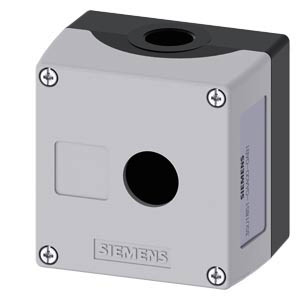 Gehäuse für Befehlsgeräte, 22 mm, rund, Gehäusematerial Metall, Gehäuseoberteil grau, 1 Befehlsstelle, ohne Bestückung, Vertiefung für Schilder, Bodenbefestigung, oben und unten je 1xM20 Gehäuse SIRIUS ACT für die Montage der 22,5 mm Befehls- und Meldegeräte bei räumlich getrennter Anordnung von Steuereinheiten und Schaltschränken. Unter dem Markennamen SIRIUS ACT bietet Siemens ein einzigartiges Portfolio an Befehls- und Meldegeräten mit weltweiten Produkt-Zulassungen in drei modernen Designreihen aus robustem Echtmetall und hochwertigem Kunststoff. Das innovative Aufschnappkonzept vereinfacht die Montage so weit, dass dafür nur eine Hand und kein Spezialwerkzeug erforderlich ist. Als Montagebohrungen genügen nutfreie Löcher, da bereits ein 100%iger Verdrehschutz integriert ist. Dank der durchgängig hohen Schutzart sind die robusten Geräte industrietauglich und für den Außeneinsatz geeignet. Sogar die Reinigung mit Hochdruckstrahl ist möglich. Weder Staub, Öle noch aggressive Laugen können den zuverlässigen Betrieb stören. Neben der Standardverdrahtung können die meisten Geräte auch über PROFINET, AS-Interface oder IO-Link an die Steuerung angebunden werden. Damit reduzieren Sie Ihren Verdrahtungsaufwand, minimieren Fehlerquellen und gewinnen mehr Flexibilität. Komfortabel unterstützt der grafische Online-Konfigurator bei Auswahl und Bestellung von Einzelgeräten, Gehäusen und Beschriftungen. Umfangreiche Dokumentation (z.B. Handbuch, 3D-Daten, Anschlussdiagramm) ist verfügbar. Lieferbare Ausführungen: gelb/grau, Kunststoff/Metall, 1-6 Befehlstellen, Leergehäuse/Vorbestückung, wahlweise mit AS-Interface-Anbindung. SIRIUS ACT - Performance in Action beim Befehlen und Melden. Einfach montiert, einfach stark, einfach perfekt.