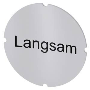 | Kurzbeschreibung | Einlegeschild für Leuchtdrucktaster, rund, milchig, Beschriftung: Langsam |