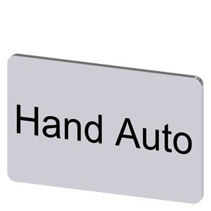 Bezeichnungsschild zum Schnappen oder Kleben auf Schildträger, Schildgrösse 17,5x27 mm, Schild silber, Schrift schwarz, mit Beschriftung: Hand Auto Bezeichnungsschild zur Beschriftung der SIRIUS ACT Befehls- und Meldegeräte. Unter dem Markennamen SIRIUS ACT bietet Siemens ein einzigartiges Portfolio an Befehls- und Meldegeräten mit weltweiten Produkt-Zulassungen in drei modernen Designreihen aus robustem Echtmetall und hochwertigem Kunststoff. Das innovative Aufschnappkonzept vereinfacht die Montage so weit, dass dafür nur eine Hand und kein Spezialwerkzeug erforderlich ist. Als Montagebohrungen genügen nutfreie Löcher, da bereits ein 100%iger Verdrehschutz integriert ist. Dank der durchgängig hohen Schutzart sind die robusten Geräte industrietauglich und für den Außeneinsatz geeignet. Sogar die Reinigung mit Hochdruckstrahl ist möglich. Weder Staub, Öle noch aggressive Laugen können den zuverlässigen Betrieb stören. Neben der Standardverdrahtung können die meisten Geräte auch über PROFINET, AS-Interface oder IO-Link an die Steuerung angebunden werden. Damit reduzieren Sie Ihren Verdrahtungsaufwand, minimieren Fehlerquellen und gewinnen mehr Flexibilität. Komfortabel unterstützt der grafische Online-Konfigurator bei Auswahl und Bestellung von Einzelgeräten, Gehäusen und Beschriftungen. Umfangreiche Dokumentation (z.B. Handbuch, 3D-Daten, Anschlussdiagramm) ist verfügbar. Umfangreiches optionales Zubehör (z.B. Beschriftungsschilder, für Schutz- und Zugangssicherung, Handhaben, Gehäusezubehör) verfügbar. SIRIUS ACT - Performance in Action beim Befehlen und Melden. Einfach montiert, einfach stark, einfach perfekt.