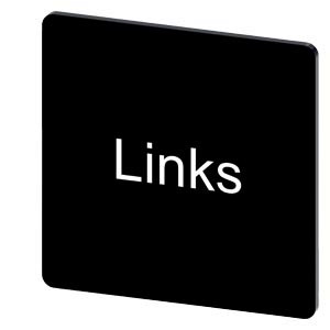 Bezeichnungsschild zum Schnappen oder Kleben auf Schildträger, Schildgrösse 27x27 mm, Schild schwarz, Schrift weiß, mit Beschriftung: Links Bezeichnungsschild zur Beschriftung der SIRIUS ACT Befehls- und Meldegeräte. Unter dem Markennamen SIRIUS ACT bietet Siemens ein einzigartiges Portfolio an Befehls- und Meldegeräten mit weltweiten Produkt-Zulassungen in drei modernen Designreihen aus robustem Echtmetall und hochwertigem Kunststoff. Das innovative Aufschnappkonzept vereinfacht die Montage so weit, dass dafür nur eine Hand und kein Spezialwerkzeug erforderlich ist. Als Montagebohrungen genügen nutfreie Löcher, da bereits ein 100%iger Verdrehschutz integriert ist. Dank der durchgängig hohen Schutzart sind die robusten Geräte industrietauglich und für den Außeneinsatz geeignet. Sogar die Reinigung mit Hochdruckstrahl ist möglich. Weder Staub, Öle noch aggressive Laugen können den zuverlässigen Betrieb stören. Neben der Standardverdrahtung können die meisten Geräte auch über PROFINET, AS-Interface oder IO-Link an die Steuerung angebunden werden. Damit reduzieren Sie Ihren Verdrahtungsaufwand, minimieren Fehlerquellen und gewinnen mehr Flexibilität. Komfortabel unterstützt der grafische Online-Konfigurator bei Auswahl und Bestellung von Einzelgeräten, Gehäusen und Beschriftungen. Umfangreiche Dokumentation (z.B. Handbuch, 3D-Daten, Anschlussdiagramm) ist verfügbar. Umfangreiches optionales Zubehör (z.B. Beschriftungsschilder, für Schutz- und Zugangssicherung, Handhaben, Gehäusezubehör) verfügbar. SIRIUS ACT - Performance in Action beim Befehlen und Melden. Einfach montiert, einfach stark, einfach perfekt.
