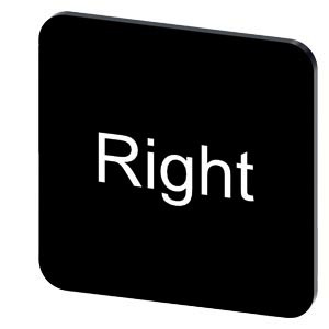 Bezeichnungsschild zum Kleben auf Gehäuse, Schildgrösse 22x22 mm, Schild schwarz, Schrift weiß, mit Beschriftung: Right Bezeichnungsschild zur Beschriftung der SIRIUS ACT Befehls- und Meldegeräte. Unter dem Markennamen SIRIUS ACT bietet Siemens ein einzigartiges Portfolio an Befehls- und Meldegeräten mit weltweiten Produkt-Zulassungen in drei modernen Designreihen aus robustem Echtmetall und hochwertigem Kunststoff. Das innovative Aufschnappkonzept vereinfacht die Montage so weit, dass dafür nur eine Hand und kein Spezialwerkzeug erforderlich ist. Als Montagebohrungen genügen nutfreie Löcher, da bereits ein 100%iger Verdrehschutz integriert ist. Dank der durchgängig hohen Schutzart sind die robusten Geräte industrietauglich und für den Außeneinsatz geeignet. Sogar die Reinigung mit Hochdruckstrahl ist möglich. Weder Staub, Öle noch aggressive Laugen können den zuverlässigen Betrieb stören. Neben der Standardverdrahtung können die meisten Geräte auch über PROFINET, AS-Interface oder IO-Link an die Steuerung angebunden werden. Damit reduzieren Sie Ihren Verdrahtungsaufwand, minimieren Fehlerquellen und gewinnen mehr Flexibilität. Komfortabel unterstützt der grafische Online-Konfigurator bei Auswahl und Bestellung von Einzelgeräten, Gehäusen und Beschriftungen. Umfangreiche Dokumentation (z.B. Handbuch, 3D-Daten, Anschlussdiagramm) ist verfügbar. Umfangreiches optionales Zubehör (z.B. Beschriftungsschilder, für Schutz- und Zugangssicherung, Handhaben, Gehäusezubehör) verfügbar. SIRIUS ACT - Performance in Action beim Befehlen und Melden. Einfach montiert, einfach stark, einfach perfekt.