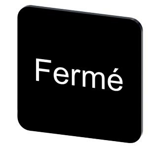 Bezeichnungsschild zum Kleben auf Gehäuse, Schildgrösse 22x22 mm, Schild schwarz, Schrift weiß, mit Beschriftung: Ferme Bezeichnungsschild zur Beschriftung der SIRIUS ACT Befehls- und Meldegeräte. Unter dem Markennamen SIRIUS ACT bietet Siemens ein einzigartiges Portfolio an Befehls- und Meldegeräten mit weltweiten Produkt-Zulassungen in drei modernen Designreihen aus robustem Echtmetall und hochwertigem Kunststoff. Das innovative Aufschnappkonzept vereinfacht die Montage so weit, dass dafür nur eine Hand und kein Spezialwerkzeug erforderlich ist. Als Montagebohrungen genügen nutfreie Löcher, da bereits ein 100%iger Verdrehschutz integriert ist. Dank der durchgängig hohen Schutzart sind die robusten Geräte industrietauglich und für den Außeneinsatz geeignet. Sogar die Reinigung mit Hochdruckstrahl ist möglich. Weder Staub, Öle noch aggressive Laugen können den zuverlässigen Betrieb stören. Neben der Standardverdrahtung können die meisten Geräte auch über PROFINET, AS-Interface oder IO-Link an die Steuerung angebunden werden. Damit reduzieren Sie Ihren Verdrahtungsaufwand, minimieren Fehlerquellen und gewinnen mehr Flexibilität. Komfortabel unterstützt der grafische Online-Konfigurator bei Auswahl und Bestellung von Einzelgeräten, Gehäusen und Beschriftungen. Umfangreiche Dokumentation (z.B. Handbuch, 3D-Daten, Anschlussdiagramm) ist verfügbar. Umfangreiches optionales Zubehör (z.B. Beschriftungsschilder, für Schutz- und Zugangssicherung, Handhaben, Gehäusezubehör) verfügbar. SIRIUS ACT - Performance in Action beim Befehlen und Melden. Einfach montiert, einfach stark, einfach perfekt.