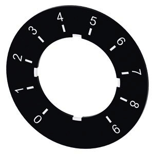 | Kurzbeschreibung | Bezeichnungsschild für Potentiometer, Schild schwarz, Beschriftung: 0-9 |