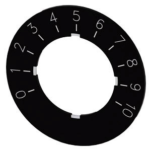 | Kurzbeschreibung | Bezeichnungsschild für Potentiometer, Schild schwarz, Schrift weiß, 0-10 |