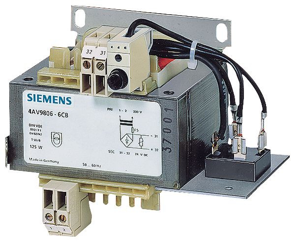 SV (UNGESIEBT), PHASEN:1, PN(KW):0,08, UPRI(V):400, USEC(V DC):24, ISEC(A DC):3,33, F(HZ):50...60, SCHALTGR./SCHIRMW.:II0 /0, SCHUTZKL.:I, TA/ISOKL:50 /B, W(%):48,3, IP00, ANSCHLUSS:SCHRAUB-/FLACHSTECK- ANSCHLUSS, MONTAGE:SCHRAUBEN, EN 61558 >SICHERHEITSTRANSFORMATOR< Die Stromversorgungen 4AV liefern eine ungeregelte Gleichspannung von 24 V DC auf Basis von Einphasen- bzw. Dreiphasen-Sicherheitstransformatoren mit nachgeschalteten Gleichrichtern und Kondensatorsiebung nach EN61131-2.