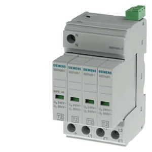 Überspannungsableiter T2, Un 240/400V, Uc 350/264V AC, Schutzbausteine steckbar 3+1 Schaltung (TN-S, TT), Breite 49,2 mm Überspannungsschutzgeräte zum Schutz vor Überspannungen in elektrischen Anlagen. Die Überspannungsschutzgeräte von Siemens, als wichtiger Bestandteil der SENTRON Schutzkomponenten für die Elektroinstallation, bieten effektiven Schutz bei Blitz und Überspannungen infolge atmosphärischer Einflüsse oder Schaltvorgängen. Komfortable Montage- und Anschlusstechnik sowie ein durchgängiges Design sind die Kennzeichen der Gerätefamilie. Ob für Infrastruktur oder für industrielle Anforderungen, Siemens bietet Überspannungsschutzgeräte für alle Anwendungen und jedes Einsatzgebiet. Die Siemens Überspannungsschutzgeräte zeichnen sich vor allem aus durch: 1. Effektiver Investitions- und Anlagenschutz vor Blitz und Überspannungen. 2. Für jeden Anwendungsfall der richtige Blitz-/ und Überspannungsschutz (Typ1 bis 3). 3. Fernmeldekontakt zum externen Upload der Zustandsanzeige. 4. Zuverlässige Sicherheit bei der Installation dank standardmäßig enthaltenem Umgreif- und Berührungsschutz. 5. Werkzeugloses Lösen von der Hutschiene. 6. Klar ersichtliche Fehleranzeige. 7. Datamatrix-Code vorne am Gerät bietet schnell und einfach alle Infos rund um den Blitz- und Überspannungsschutz. 8. Optimale Technik für Ihre Sicherheit - nur von Siemens.