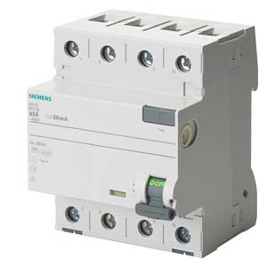 FI-Schutzschalter, 4-polig, Typ A, kurzzeitverzögert, In: 40 A, 30 mA, Un AC: 400 V, mit thermischem Überlastschutz FI-Schutzschalter SENTRON 5SV3 für den umfassenden Schutz für Personen und Sachwerte vor elektrischem Schlag.Die FI-Schutzschalter bieten zuverlässige Sicherheit bei der Installation durch den standardmäßig enthaltenen Umgreif- und Berührungsschutz. Mit der komfortablen Schieber-Hand-Betätigung können Sie die FI-Schutzschalter werkzeuglos von der Hutschiene bzw. aus dem Sammelschienenverbund lösen. Über den Datamatrix-Code am Gerät erhalten Sie schnellen Zugang zu allen technischen Daten in der Siemens Industry Online Support App.Die SENTRON Schutzschaltgeräte können mit dem durchgängigen Zubehör aus dem Systembaukasten um viele Funktionen erweitert werden.Optimale Technik für Ihre Sicherheit - nur von Siemens.