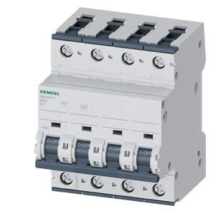 Leitungsschutzschalter 400V 10kA, 4-polig, C, 1A, T=70mm Leitungsschutzschalter SENTRON 5SY4 für den sicheren Kurzschluss- und Überlastschutz für Wohngebäude, Zweckbau und besondere Industrieanwendungen. Werkzeuglose Montage und Demontage des Geräts mit Hilfe eines Zweifachschiebers. Beliebige Kombination von Leitern und Sammelschiene durch Doppelkammerklemme. Einfache Verdrahtung der Einspeisung durch die hinten liegende Sammelschiene. Die Leitungsschutzschalter 5SY sind erhältlich in 1-, 2-, 3-, 4- sowie in 1+N- und 3+N-poliger Ausführung. Das komplette Zubehör ist einheitlich für alle Leitungsschutzschalter 5SY verwendbar. Einfach sicher mit den Schutzgeräten von SENTRON.