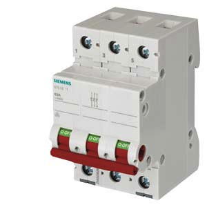 Lasttrennschalter, Ein-Aus-Schalter 100 A 3-polig, mit rotem Griff Ein-Aus-Schalter SENTRON 5TL1 zum Schalten von Beleuchtungen, Motoren und sonstigen elektrischen Betriebsmitteln. Erhöhte Betriebssicherheit und Anlagenverfügbarkeit dank separater Ein- und Ausschaltung des betroffenen Stromkreises mit klar ersichtlicher Schaltstellungsanzeige. Zuverlässige Sicherheit bei der Installation dank standardmäßig enthaltenen Umgreif- und Berührungsschutz. Werkzeugloses Lösen von der Hutschiene bzw. aus dem Sammelschienenverbund durch komfortable Schieber-Hand-Betätigung. Einsetzbar als Lasttrennschalter nach EN 60947-1 zum Trennen oder Freischalten von Anlagen. Durch das einheitliche Design integriert sich der Ein-Aus-Schalter 5TL1 optisch perfekt in die Reihe der FI-Schutzschalter und Leitungsschutzschalter. Optimale Technik für Ihre Sicherheit - nur von Siemens.