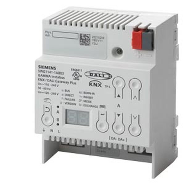 - Zur Kommunikation über KNX mit digitalen elektronischen Vorschaltgeräten (EVG) mit DALI-Schnittstelle - DALI-Ausgang mit DALI-2 Zertifizierung nach IEC 62386-101 und 103, über DALI-Busleitung bis zu 64 DALI-EVG Ed.1 und DALI-2 und mindestens 10 DALI-Sensoren (davon max. 8 Bewegungsmelder) anschließbar (aktuell werden nur Osram und Siemens DALI Sensoren unterstützt) - Integriertes Netzgerät für Eingangsspannung von AC 110-240 V, 50-60 Hz oder DC 120-240 V zur Spannungsversorgung der Gateway-Elektronik und DALI-Ausgänge - DALI-Ausgangsspannung ca. 19 V, potentialfrei und kurzschlussfest - Fremdspannungserkennung bei Inbetriebnahme, ob an DALI-Ausgang fehlerhaft Netzspannung anliegt - LED-Display zur Anzeige von Betriebszuständen und Fehlermeldungen - 1 Taster zum Umschalten zwischen Bus- und Direktbetrieb - 1 Tasterpaar pro DALI-Ausgang zum gemeinsamen Ein- bzw. Ausschalten aller angeschlossenen Leuchten im Direktbetrieb - 1 LED pro DALI-Ausgang zur Schaltzustandsanzeige aller angeschlossenen Leuchten im Direktbetrieb - Konfigurierbares Verhalten bei Busspannungsausfall (Standalone) - Konfigurierbare Standardanwendungen ohne ETS - Zeitschaltfunktion für Tag, Woche, Datum mit Astrofunktion - Ansteuerung aller angeschlossenen Leuchten gemeinsam im Broadcast-Betrieb - Meldung und Anzeige eines Lampen- und EVG-Fehlers pro Leuchtengruppe und pro DALI-Teilnehmer - Umsetzung von Dimmbefehlen in temporäre Sollwertverschiebung bei EVGs mit integrierter Konstantlichtregelung und direkt angeschlossenem Helligkeitssensor - Ein- oder zweistufiger Zeitschalterbetrieb - 4 integrierte Effektsteuerungen für einmalig oder zyklisch ablaufende Lauflicht- oder Farbeffekte - Unterscheidung von Einzelbatterienotleuchten mit einem oder zwei DALI Geräten - Starten der Selbsttests jedes einzelnen Konverters und Meldung des Testergebnisses über Bus oder speichern in persistenten Speicher mit Speicherüberwachung über Objekt - Unterscheidung von Funktionsprüfung, Teildauerprüfung, Dauerprüfung - Pro Kanal bis zu 6 Stand-by-Bereichsauswertungen zur Ansteuerung von Schaltaktoren - Integrierte Szenensteuerung für bis zu 16 Szenen pro Kanal - 16 integrierte 2-Punkt-Regler zur Helligkeitsregelung und 16 Konstantlichtregler für 1 Hauptleuchtenreihe und bis zu 4 weitere Leuchtenreihen - CIN zur eindeutigen Zuordnung des DALI-EVG - Defekte DALI-EVG ohne ETS zu erneuern - Zuordnung der DALI-EVG zu den einzelnen Gruppen und mit Testmöglichkeit der EVG, Gruppen, Szenen und Effekte mittels ETS - Zuordnung DALI-Sensoren mittels ETS - Integrierter KNX-Busankoppler mit max. halber Standard-Buslast, KNX-Busanschluss über Busklemme - Reiheneinbaugerät für Montage auf Tragschiene TH35 DIN EN 60715