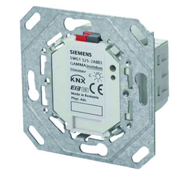 UP 525/13 UP-Gerät ohne Hängebügel, Lastart R,L,C - Ein Ausgang zum Schalten und Dimmen von ohmschen (R), induktiven (L) oder kapazitiven (C) Lasten - Automatische Anpassung an Phasenanschnitt- oder Phasenabschnitt-Steuerung, abhängig vom angeschlossenen Lasttyp - Bemessungsbetriebsspannung AC 230 V - Bemessungsfrequenz: 50...60 Hz - Bemessungsleistung bei +35°C Umgebungstemperatur: 10...250 VA - Elektronischer Schutz des Ausgangs gegen Überlast, Kurzschluss und Übertemperatur - Schraubenlose Klemmen zum Anschluss und Durchschleifen von unbehandelten Leitern eindrähtig, feindrähtig und mehrdrähtig, 0,5...2,5 mm2 Durchmesser - Betrieb der Elektronik über Busspannung - Integrierter Busankoppler, Busanschluss über Busklemme - Zum Einbau in UP-Gerätedosen mit Durchmesser 60 mm, 60 mm tief