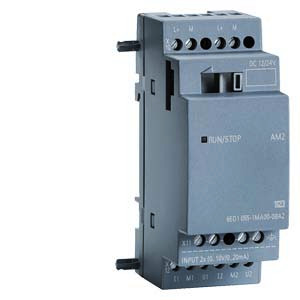SIPLUS LOGO! AM2 based on 6ED1055-1MA00-0BA2 mit Conformal Coating, -40…+70°C, start up -25°C, Erweiterungsmodul, SV/: DC 12/24V, 2 AE, 0-10V oder 0/4-20mA für LOGO! 8 Die LOGO!-Erweiterungsmodule ermöglichen es, eine LOGO!-Konfiguration sehr individuell auszubauen. Ein LOGO! 8 Grundgerät kann auf 24 digitale Eingänge, 20 digitale Ausgänge, 8 analoge Eingänge und 8 analoge Ausgänge ausgebaut werden. Hierfür stehen zehn verschiedene Erweiterungsmodule zur Verfügung, die bei unterschiedlicher Eingangsspannung die Ergänzung um digitale und analoge Ein- und Ausgänge ermöglichen. Wie die CPU sind auch die analogen Eingangsbaugruppen gegen extreme Umgebungsbedingungen geschützt. Durch das 100 % Conformal Coating widerstehen sie biologischen, chemischen und mechanisch aktiven Stoffen, Betauung, Frost und Schadgasen. Egal unter welchen Bedingungen - Ihre analogen Signale werden zuverlässig erfasst.