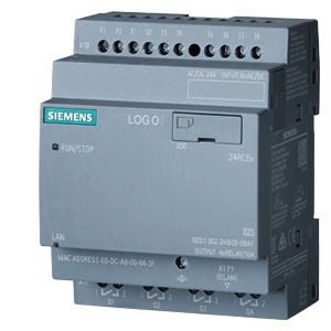 LOGO! 24RCEO (AC), Logikmodul, SV/E/A: DC 24V/24V AC/Relais, 8 DE/4 DA, ohne Display, Speicher 400 Blöcke, modular erweiterbar, Ethernet, integr. Web-Server, Datalog, benutzerdefinierte Web-Seiten, Standard microSD-Karte für LOGO! SOFT Comfort ab V8.4, ältere Projekte ablauffähig Cloud Anbindung, MQTT in allen LOGO! 8.4 Grundgeräten Die LOGO! 8 Grundgeräte mit 8 digitalen Ein- und 4 digitalen Ausgängen und ihrer geringen Einbaubreite von 72 mm haben viele bekannte Funktionen (Stromstoßrelais, Treppenhausautomat, Hilfsschütz, Zeitrelais etc.) integriert, die vielfältig miteinander kombiniert werden können. Schaltprogramme können einfach am PC erstellt und simuliert werden. Die jeweils integrierte Ethernet-Schnittstelle erlaubt die Kommunikation von bis zu neun LOGO! 8 Modulen bzw. SIMATIC S7 Systemen. Mit dem ebenfalls integrierten Webserver können angeschlossene Verbraucher über WLAN bzw. Internet überwacht und gesteuert werden. Dabei können die Webseiten vom Anwender selbst gestaltet werden, auch ohne HTML-Kenntnisse. Über Zusatzmodule ist GSM- bzw. GPS-Kommunikation sowie die Einbindung in ein KNX-Gebäudeleitsystem möglich. LOGO! 8 Grundgeräte sind mit und ohne Anzeigen für verschiedene Eingangsspannungen sowie mit Transistor- oder Relaisausgängen verfügbar (bis 10 A Bemessungsstrom). Erweiterbar mit zusätzlichen Modulen auf bis zu 24DI / 20 DQ (8 AI / 8 AQ). Cloud-Kommunikation integriert. LOGO! 8 lässt sich auch um ein externes Textdisplay für aussagekräftige Meldungen im Klartext erweitern. Die Hintergrundfarbe ist für optische Hervorhebungen wählbar. Diverse LOGO! Powermodule zur Stromversorgung sind ebenfalls verfügbar.