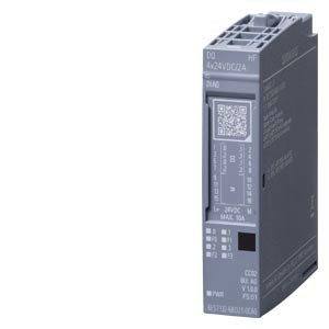 SIMATIC ET 200SP, digitales Ausgangsmodul, DQ 4x24VDC/2A High Feature, Source Output (PNP,P-schaltend) Verpackungseinheit: 1 Stück, passend für BU-Typ A0, Farbcode CC02, Kanal-Diagnose für: Kurzschluss und Drahtbruch, Versorgungsspannung, Kanalfehler-LED Mit SIMATIC ET 200SP bietet Siemens Ihnen ein multifunktionales und dezentrales Peripheriesystem, das aufgrund seiner platzsparenden Bauweise ganz einfach in Betrieb genommen werden kann. Es ist für die Schutzart IP20 zugelassen und für den Einbau in einem kompakten Schaltkasten konzipiert. ???Das System gewährleistet Ihnen maximale Flexibilität, da Sie die Module aufgrund des Multi Hot Swapping jederzeit schnell und einfach tauschen können.?? Darüber hinaus bietet Ihnen das SIMATIC ET 200SP ein breites Spektrum an unterschiedlichen sowie schnellen Kommunikationswegen. ???Aufgrund der Integration des MultiFeldbus Interfacemoduls IM155-6MF sind Sie jederzeit flexibel und können das für Ihre Applikation optimale Protokoll verwenden, da durch diese Funktion mehrere Ethernet Protokolle unterstützt werden.?? ?Montage und Service werden durch ein einheitliches Kennzeichnungssystem, das auf Referenzkennzeichnungsschildern und Anschlussbelegungen mit Farbkodierung basiert, vereinfacht. ?Siemens garantiert Ihnen durch die Einbindung der innovativen und zugleich langlebigen Automatisierungsprodukte Zukunftssicherheit, denn als Branchenexperten setzen sie heute schon auf die Technologien von Morgen und definieren somit die Marktstandards neu. Durchgängige Datenverfügbarkeit, flexible Anwendungsfälle sowie vielseitige Integrationsmöglichkeiten sorgen für die optimale Performance der ET 200 Produkte. Die skalierbare und kostenoptimierte Konfiguration einer ET 200SP - Station wird durch das umfassende Spektrum von Signalbaugruppen gewährleistet. Es stehen neben digitalen und analogen Ein- und Ausgabebaugruppen jeweils auch fehlersichere Varianten für Anwendungen bis SIL 3 / PLe zur Verfügung. Dies gilt ebenso für die integrierten Motorstarter, welche für Motoren bis 5,5 kW geeignet sind. Energy Meter zur Messung und Analyse des Energieverbrauchs, IO-Link Master (V1.1.) sowie viele weitere Kommunikations- und Technologiemodule ermöglichen es dem System sich an jede Automatisierungsaufgabe anzupassen. Das verfügbare Zubehör fürET 200SP reicht von Farb- und Referenzkennzeichnungsschildern bis hin zu Beschriftungsstreifen für die einzelnen Module und sorgt für maximale Übersichtlichkeit im Schaltschrank.