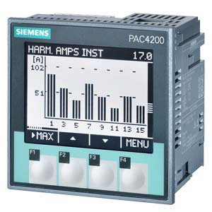 SENTRON PAC4200, LCD, 96x96mm Power Monitoring Device Schalttafel-Einbaugerät zur Messung elektrischer Größen UC: 110-340VDC/95-240VAC UE: max. 690/400V, 45-65Hz IE: x/1A oder x/5A AC Schraubklemmenanschluss
