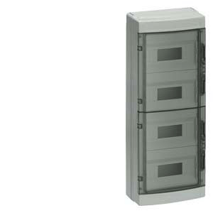 nach IEC 60439-3, im Außenbereich einsetzbar (-20°C bis +60°C), Schutzklasse 2 (Schutzisoliert), UV-beständig, ohne N/PE-Klemmleiste SIMBOX Universal WP Wandverteiler AP, IP65 4-reihig, 72TE, ohne Klemmleiste SIMBOX WP ALPHA 8GB1 für Anwendungen als Unter- oder Stockwerkverteiler in der elektrischen Gebäudeinstallation von Wohn- und Zweckbauten. Die SIMBOX WP Aufputzverteiler sind konzipiert für optimale Raumausnutzung auch bei geringen Platzverhältnissen. Kleinverteiler ALPHA SIMBOX - optimal bis ins Detail.