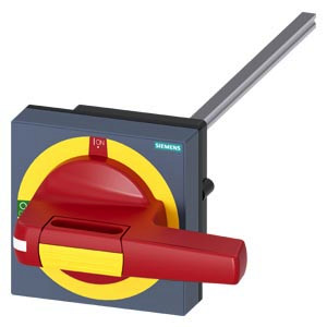 Türkupplungsdrehantrieb NOT-AUS mit Toleranzausgleich Größe 100 x 100, Welle 8 x 8, 300mm, 0-I, Komplettgerät Handhabe Größe 100mm Zubehör für 3KD Baugr. 3, 3KF Baugr. 2 Manuelle Antriebe für eine rundum komfortable Bedienung des Kompaktleistungsschalters 3VA. Verfügbar als Front-, Tür und Seitenwanddrehantrieb mit diversen Abschließ- und Verriegelungsmöglichkeiten. Die Handhaben sind als Standard- und NOT-HALT-Variante erhältlich, jeweils mit oder ohne Beleuchtungskit. SENTRON Kompaktleistungsschalter 3VA - Ein System. Für alle Anwendungen.