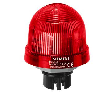 Einbauleuchte Blitzlicht, m. eingebauter Blitzelektronik, rot, AC 230 V, Durchmesser 70 mm Blitzlichtelement SIRIUS 8WD53 inkl. Leuchtmittel zur visuellen Signalgebung bei rauen Umgebungsbedingungen und Anlagen im Außenbereich, z.B. zur optischen Meldung des Betriebszustandes in Fertigungsanlagen. Die Einbauleuchten sind extrem widerstandsfähig gegen Schock und Vibrationen. Ihre spezielle Formgebung ermöglicht eine optimale Abstrahlung in seitliche Richtung oder nach oben. Neben einem Dauerlicht stehen auch Blinkleuchten, Rundumleuchten sowie Blitzleuchten in verschiedenen Farben und Spannungen zur Verfügung. Als Zubehör sind Füße, Rohre, Adapter, Glühlampen, LEDs und Rohradapter erhältlich. Signalsäulen SIRIUS 8WD - Modular und kommunikationsfähig.