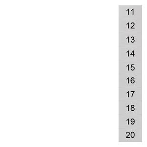 | Kurzbeschreibung | Bezeichnungsschild, front, mit 11-20, horizontal, Klemmenbreite: 6,2 mm |