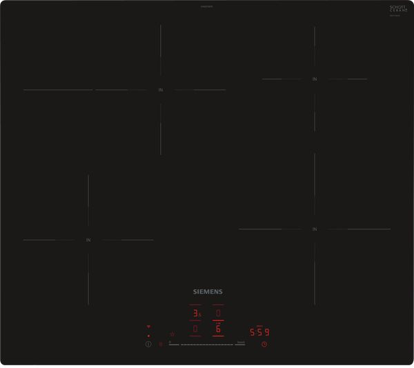 Das autarke Induktionskochfeld EH601HFB1E von Siemens stellt vier Kochzonen mit 17 Leistungsstufen und PowerBoost-Funktion zum Kochen, Braten und Dünsten zur Verfügung. Die zuschaltbare Bräterzone bietet Platz für große Bräter und Pfannen. Die touchSlider-Bedienung ermöglicht die Einstellung der Leistungsstufe mit nur einem Finger. Das EH601HEB1E lässt sich zudem smart via Home Connect App steuern und in Kombination mit einer entsprechenden Dunstabzugshaube passt sich diese automatisch dem Kochfeld an. Mit der Favoriten-Taste kann man das Kochfeld ganz individuell nach den eigenen Wünschen einstellen und sogar sein Smart Home steuern. In puncto Sicherheit überzeugt das EH601HFB1E mit einer Restwärmeanzeige, einer Kindersicherung und einer Sicherheits-Zeitabschaltung.
