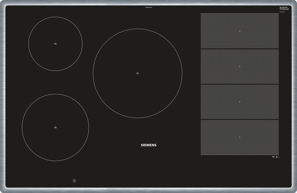 80 cm: Platz für 5 Töpfe oder Pfannen Flexibilität der Kochzonen 1 varioInduktions-Kochzone: Verwende Kochgeschirr beliebiger Form und Größe innerhalb der 40 cm langen Zone. Kochzone vorne links: 180 mm, 1.8 kW (maximale Leistung 3.1 kW) Kochzone hinten links: 145 mm, 1.4 kW (maximale Leistung 2.2 kW) Kochzone hinten: 240 mm, 2.2 kW (max. Leistung 3.7 kW) Kochzone hinten rechts: 210 mm, 190 mm, 2.2 kW (maximale Leistung 3.7 kW) Kochzone vorne rechts: 210 mm, 190 mm, 2.2 kW (maximale Leistung 3.7 kW) Benutzerfreundlichkeit Dual lightSlider: Steuere die Leistung direkt über die beiden beleuchteten Touch Leisten (nicht sichbar im ausgeschalteten Zustand). 17 Leistungsstufen: Stelle die Hitze mit 17 Leistungsstufen (9 Hauptstufen und 8 Zwischenstufen) präzise ein. Warmhaltefunktion: Warmhalten von Speisen bei voreingestellter niedriger Leistungsstufe. Timer mit Abschaltfunktion: Schaltet die Kochzone am Ende der eingestellten Zeit aus (z. B. bei gekochten Eiern). Timer: Am Ende der eingestellten Zeit ertönt ein Signal (z. B. beim Pastakochen). Laufzeitanzeige: Zeigt an, wie viel Zeit seit dem Starten des Timers vergangen ist (z. B. beim Kochen mit Kartoffeln). Zeitersparnis und Effizienz powerBoost-Funktion für alle Kochzonen: Mit 50 % mehr Leistung z. B. Wasser schneller zum Kochen bringen als auf höchster Leistungsstufe. powerBoost-Funktion für Pfannen: Erhitzt Pfannen schneller als auf höchster normaler Leistungsstufe und schützt gleichzeitig die Pfannenbeschichtung. Automatisches Verbinden / Teilen: Wird großes Kochgeschirr auf die Flex Zone gestellt, verbindet das Kochfeld automatisch zwei Kochzonen zu einer großen, durchgehenden Zone. powerMove Plus: Erhöht oder verringert die Leistung einfach durch Verschieben des Topfes nach vorne, in die Mitte oder nach hinten. varioMotion: Wenn du einen Topf auf eine andere Kochzone stellst (Flex Zone), überträgst du alle vorherigen Einstellungen durch einmaliges Bestätigen in die neue Zone. Automatische Auswahl der Zonen: Nachdem das Kochfeld eingeschaltet wurde wählt es automatisch die Flex-Kochzone aus, auf die ein neues Kochgeschirr gestellt wurde. Die Bedienung der flexiblen Kochzone passt sich der Größe des Kochgeschirrs an. Einstellungen beim Verschieben eines Topfes oder einer Pfanne gleichen sich an. quickStart: Beim Einschalten wählt das Kochfeld automatisch die Kochzone aus, auf dem im ausgeschalteten Zustand Kochgeschirr platziert wurde. reStart: Im Falle von unbeabsichtigtem Ausschalten des Kochfeldes bleiben alle Einstellungen erhalten, wenn du innerhalb von 4 Sekunden wieder einschaltest. Kochunterstützung Bratsensor Plus mit 5 Temperaturstufen: Verhindert ein Anbrennen durch die automatische Temperaturregelung des Sensors. Design Rahmen: Flachrahmen-Design Sicherheit 2-stufige Restwärmeanzeige je Kochzone: Zeigt an, welche Kochzonen noch heiß oder warm sind. Kindersicherung: Verhindert eine unbeabsichtigte Aktivierung des Kochfeldes. Wischschutzfunktion: Übergekochte Flüssigkeiten abwischen, ohne die Einstellungen unbeabsichtigt zu ändern (30 Sekunden sind alle Touch-Tasten blockiert). Hauptschalter: Alle Kochzonen auf einmal ausschalten. Automatische Sicherheitsabschaltung: Aus Sicherheitsgründen schaltet sich das Kochfeld nach einer voreingestellten Zeit ohne Interaktion automatisch ab. Energieverbrauchsanzeige: Zeigt den Stromverbrauch des letzten Kochvorgangs an. Installation Maße des Gerätes (HxBxT mm): 55 x 802 x 523 Erforderliche Nischenmaße (HxBxT mm): 55 x 780 x (500 - 500) Minimale Arbeitsplattenstärke: 16 mm Gesamtanschlusswert: 7400 W powerManagement Funktion: Bei Bedarf die maximale Leistung begrenzen (abhängig von der Absicherung der Elektroinstallation). Netzkabel: 110 cm, Anschlusskabel beigelegt in Verpackung