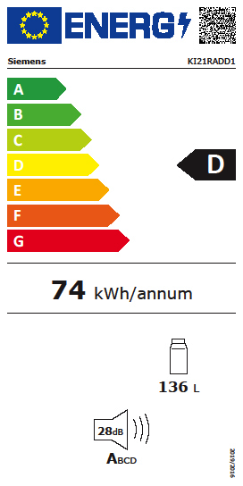 | Energieeffizienzklasse (2017/1369/EU) | D |