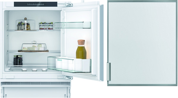 Unterbau-Kühlschrank KU21RVFE0: elektronische Temperaturregelung über LED ablesbar, optischer und akustischer Türalarm, Energie-Sparschaltung, Urlaubsschaltung, Home Connect, SuperKühlen, DimLight - sanft aufdimmende LED-Innenbeleuchtung, 4 Abstellflächen aus Sicherheitsglas, davon 3 höhenverstellbar, Bodenfach mit Schiebedeckel, Be- und Entlüftung im Sockelbereich, kein Ausschnitt in der Arbeitsplatte erforderlich, Türanschlag rechts, wechselbar, Made in Germany
