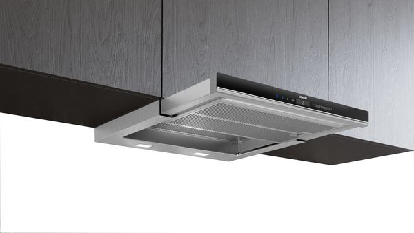 Bauform 60 cm Flachschirmhaube, Edelstahl Für die Installation in einem 60 cm breiten Spezial-Oberschrank. Wahlweise Abluft- oder Umluftbetrieb Für Umluftbetrieb ist ein Standard Umluftset oder ein Clean Air Plus Umluftset (Sonderzubehör) notwendig Design Komfort touchControl-Bedienung (3 Leistungsstufen + 2 Intensivstufen) mit Filterwechselanzeige Elektronische Steuerung über touchSlider Bedienung mit Filterwechselanzeige touchControl-Bedienung 3 Leistungsstufen + 2 Intensivstufen Intensivstufen mit automatischer Rückstellung nach 6 Minuten Automatischer Gebläsenachlauf climateControl Luftgütesensor: erkennt Gerüche und regelt die Leistungsstufen des Dunstabzugs automatisch. Ausstattung Gleichmäßige, helle Beleuchtung mit 2 x 1,5 W LED-Modul Beleuchtung mit Dimm-Funktion softLight Farbtemperatur: 3500 K Beleuchtungsstärke: 294 lux Boost-Funktion Fettfilterabdeckungen aus Edelstahl Metall-Fettfilter, spülmaschinengeeignet Sättigungsanzeige für Fett - und Geruchsfilter Betriebsart und Leistung Lüfterleistung nach EN 61591 bei Abluftbetrieb: Max. Normalstufe: 500m³/h Intensivstufe: 935 m³/h Geräuschwerte nach EN 60704-2-13 bei Abluftbetrieb: Max. Normalstufe: 57dB(A) re 1 pW Intensivstufe: 71 dB(A) re 1 pW Geräuschwerte nach EN 60704-2-13 max. Normalstufe Abluftbetrieb: Geräusch, höchste Normal-Stufe: 57 dB dB(A) re 1 pW Geräusch min./max. Normalstufe: 41/57 dB Bei Einsatz des separat erhältlichen Clean Air Umluftsets (Sonderzubehör) erreicht das Gerät im Umluftbetrieb folgende Werte: Lüfterleistung: Max. Normalstufe: 500m³/h Intensivstufe: 811m³/h Geräuschwerte: Max. Normalstufe: 63dB(A) re 1 pW Intensivstufe: 74 dB(A) re 1 pW 1 doppelflutiges Gebläse: iQdrive Motor: leiser und leistungsstarker Motor iQdrive Motor: leiser und leistungsstarker Motor Planungs- und Installationsinformation Schnellmontagebefestigung Gerätemaße (HxBxT): 378 x 598 x 290 mm Einbaumaße (HxBxT): 337 x 524 x 290 mm Abluftausgang Ø 150 mm (Reduzierstück Ø 120 mm beiliegend) Lieferung mit Rückstauklappe Länge Anschlusskabel: 1.75 m mit Stecker Griffleiste: touchSlider-Bedienung Umwelt und Sicherheit Energieeffizienzklasse: A (auf einer Energieeffizienzklassen-Skala von A+++ bis D) Durchschnittlicher Energieverbrauch: 41 kWh/Jahr* Lüfter-Effizienzklasse: A* Beleuchtungs-Effizienzklasse: A* Fettfilter-Effizienzklasse: B* Gesamtanschlusswert: 264 W