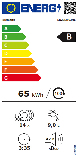 | Energieeffizienzklasse Geschirrspüler (2019/2017/EU) | B |