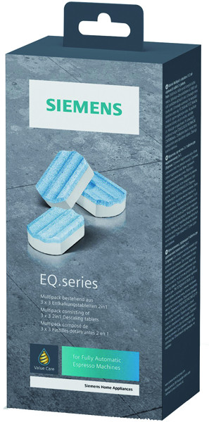 Entkalkungstabletten, 2in1: entfernt Kalk + schützt vor Korrosion, optimiert für den automatischen Entkalkungsprozess von Siemens Espresso-Vollautomaten, Multipack 9 x 36g