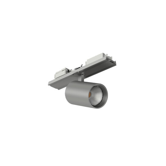 Licross Spot 31, Richtstrahler, Lichtlenkung mit Linse, aus Kunststoff, LED Bemessungslichtstrom: 5.140lm, Lichtfarbe: 940, Vorschaltgerät: EVG, mit Stecker, 3polig, mit Phasenwahl, Netzanschluss: 220..240V, AC, 50/60Hz, aus Aluminium, weißaluminium (RAL 9006), Länge: 140mm, Durchmesser: 90mm, Schutzart (gesamt): IP20, Schutzklasse (gesamt): SK I (Schutzerdung), Prüfzeichen: CE